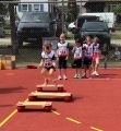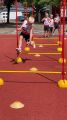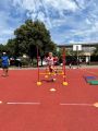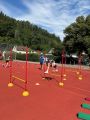 Bei strahlendem Sonnenschein und bestem Sommerwetter traten 34 Kinder in 8 Teams gegeneinander an. Nach einem gemeinsamen Aufwärmen ging es durch Koordinationsleitern, über Reifen, es wurde gesprungen, gelaufen, gezählt und geschwitzt – eben alles, was zu den Disziplinen Ski Alpin, Biathlon, Skisprung, Skicross und Nordische Kombination dazugehört.